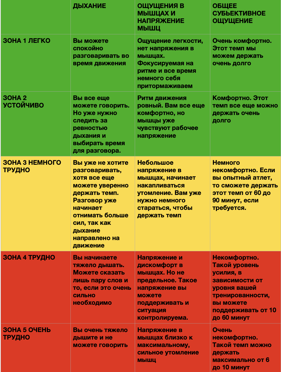 Это те 5 передач, на которых работает наше тело. То, насколько долго вы можете держаться в разных зонах зависит от вашей тренированности.